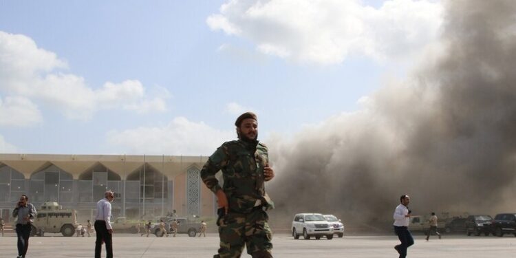 نقلت وكالة “رويترز” عن سكان قولهم إنهم سمعوا دوي انفجار قرب قصر المعاشيق الذي نقل إليه مجلس الوزراء اليمني بعد الهجوم على مطار عدن.